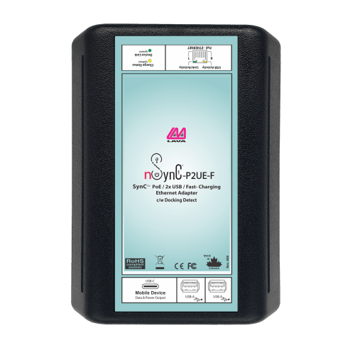 The fast-charging adapters are available in various port configurations. This includes Power over Ethernet (PoE), Ethernet, multiple USB-A ports for USB accessories. In addition, eSynC-F adapters also feature LAVA’s RBM technology, which combines robust battery protection with wired Ethernet recovery.