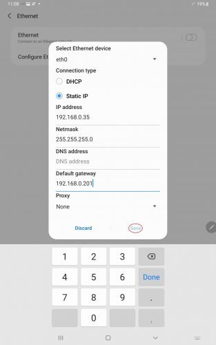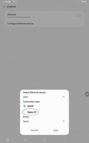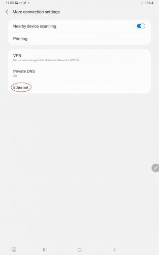 For those wishing to set up a static IP address, this can be done within the Samsung tablet’s settings. For a wired connection, you need to access the Ethernet Settings.