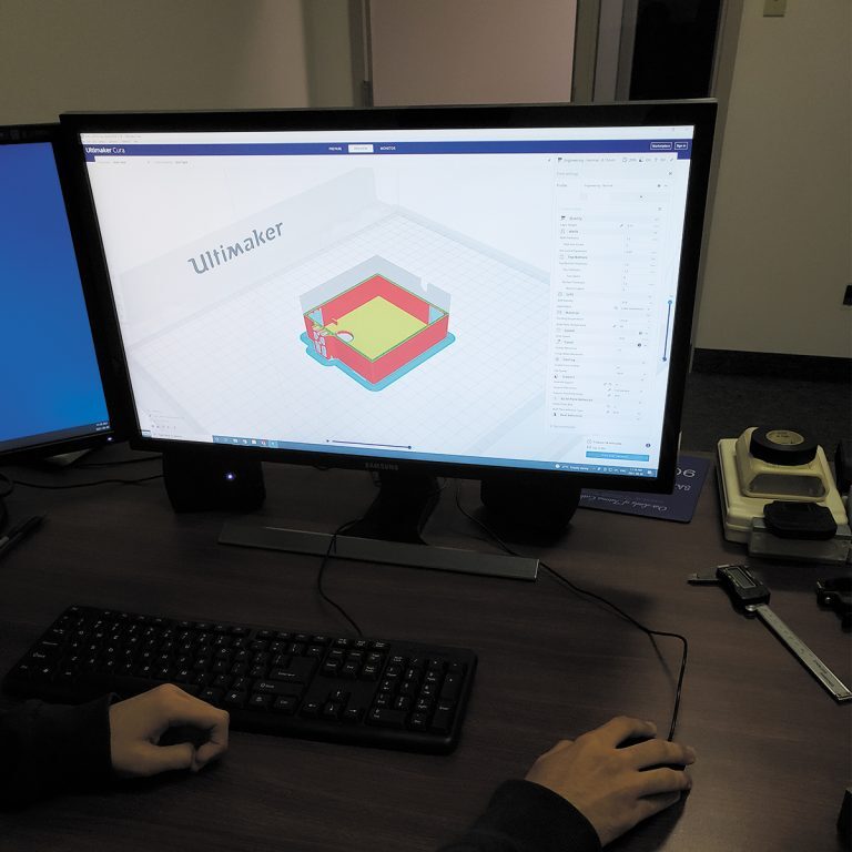 The STL is imported into Cura™, a slicer program that divides the model into horizontal layers and provides a simple set of instructions per layer for the 3D printer to follow. This process dictates the exact locations, scale, orientations, and other parameters including the density and supports for the objects being printed. When the files are ready, they are exported again, into GCODE to be read by the printer.