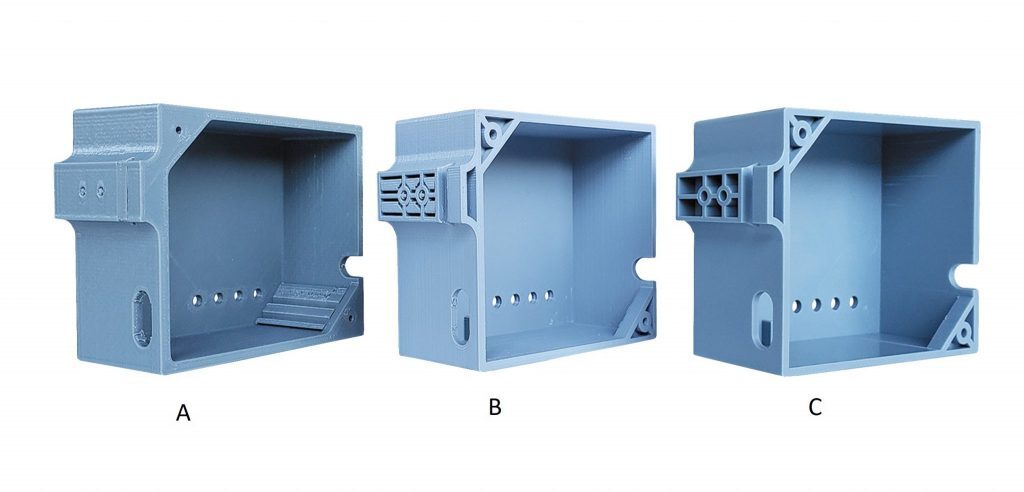 LAVA primarily 3D prints prototypes of adapter casings and enclosures. We recently produced a prototype casing for a project involving a regional transit organization, in order to accelerate the tap payment process for disabled Ontarians. The prototype served as a proof of concept for injection molded ruggedized casings to house a customized LAVA adapter and a mobile scanner. Then the final prototype design was 3D printed, and served as a reference model for the finished injection-moulded casing that will be used out in the field. (See Image Below for Prototype Casings)