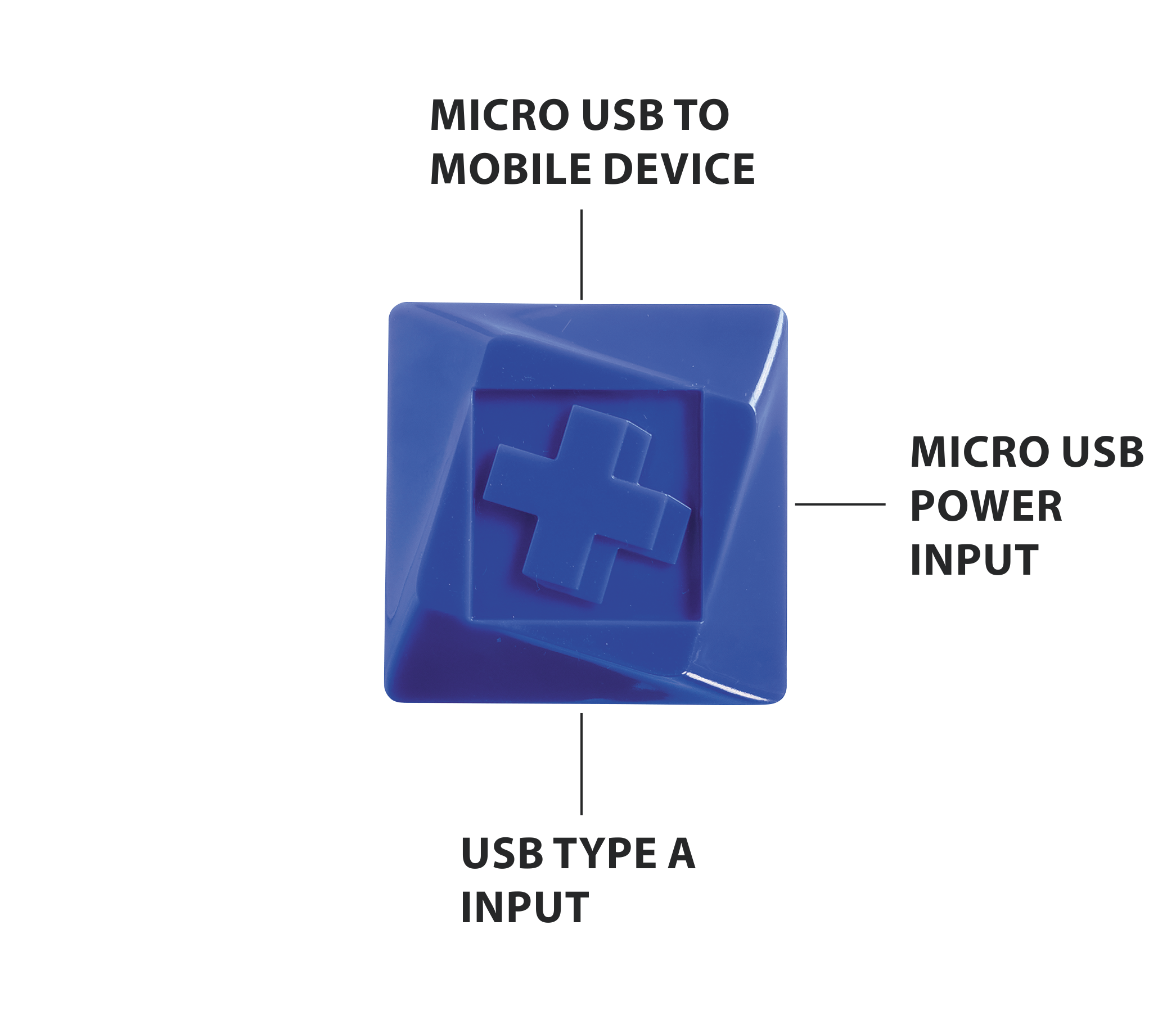 - 2 x Micro USB-B ports (power input and to tablet ports)