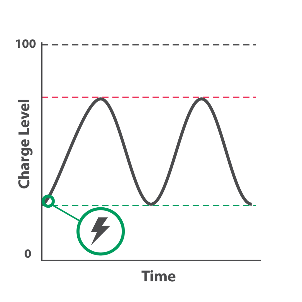 Go into the Battery Modulation Settings in the LTM app and configure the Upper Charge Boundary and Lower Charge Boundary. These settings indicate in percentages the range of which the mobile device’s battery will charge.